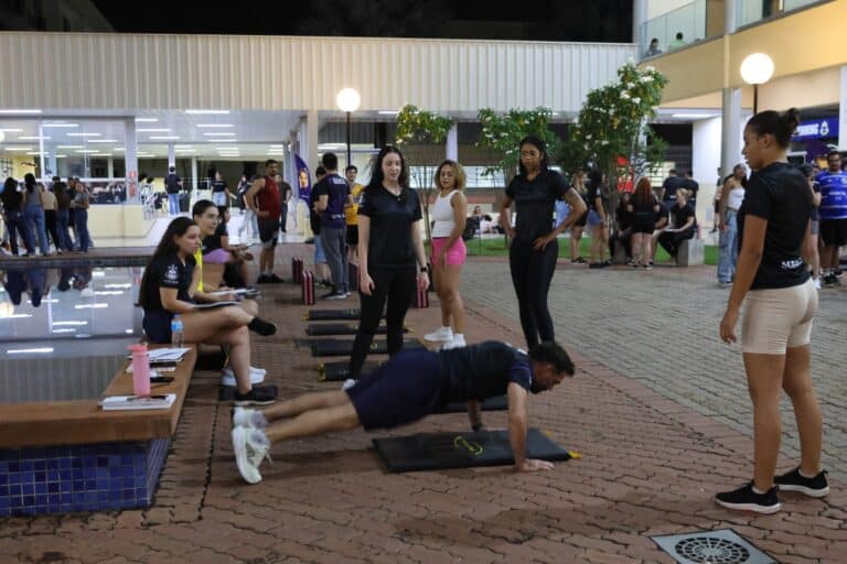 (UniSALESIANO, Araçatuba) – Os cursos da área da Saúde do UniSALESIANO promoveram, na noite do dia 8 de abril, um evento especial em alusão ao Dia Mundial da Saúde, celebrado em 7 de abril. A ação foi realizada no Centro de Convivência da Instituição e reuniu acadêmicos em uma programação voltada à prática, integração e conscientização sobre a importância dos cuidados com a saúde.